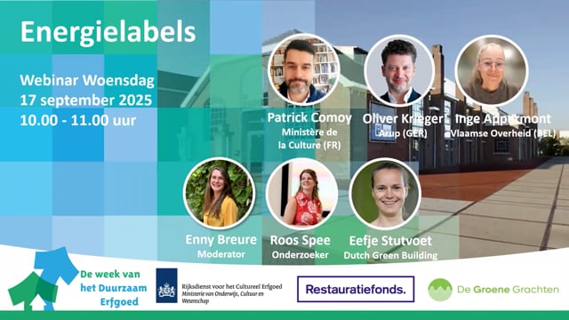 Mei 2026 wordt het energielabel verplicht voor monumenten, maar hoe pak je dat aan bij een eeuwenoud pand? Het webinar startte met onderzoeksinzichten en vervolgens ging moderator Enny Breure dieper in gesprek met de experts uit Nederland en buitenland.